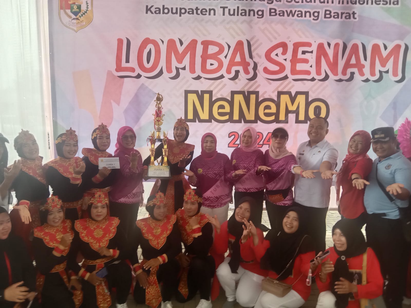 PJ Ketua TP-PKK Tubaba, Dra. Hanita Farial Firsada, M.Si., saat membuka perlombaan ini mengatakan hari ini tidak hanya sekedar melaksanakan lomba Senam NeNeMo, tapi juga merayakan semangat kebersamaan, kesehatan, dan prestasi.