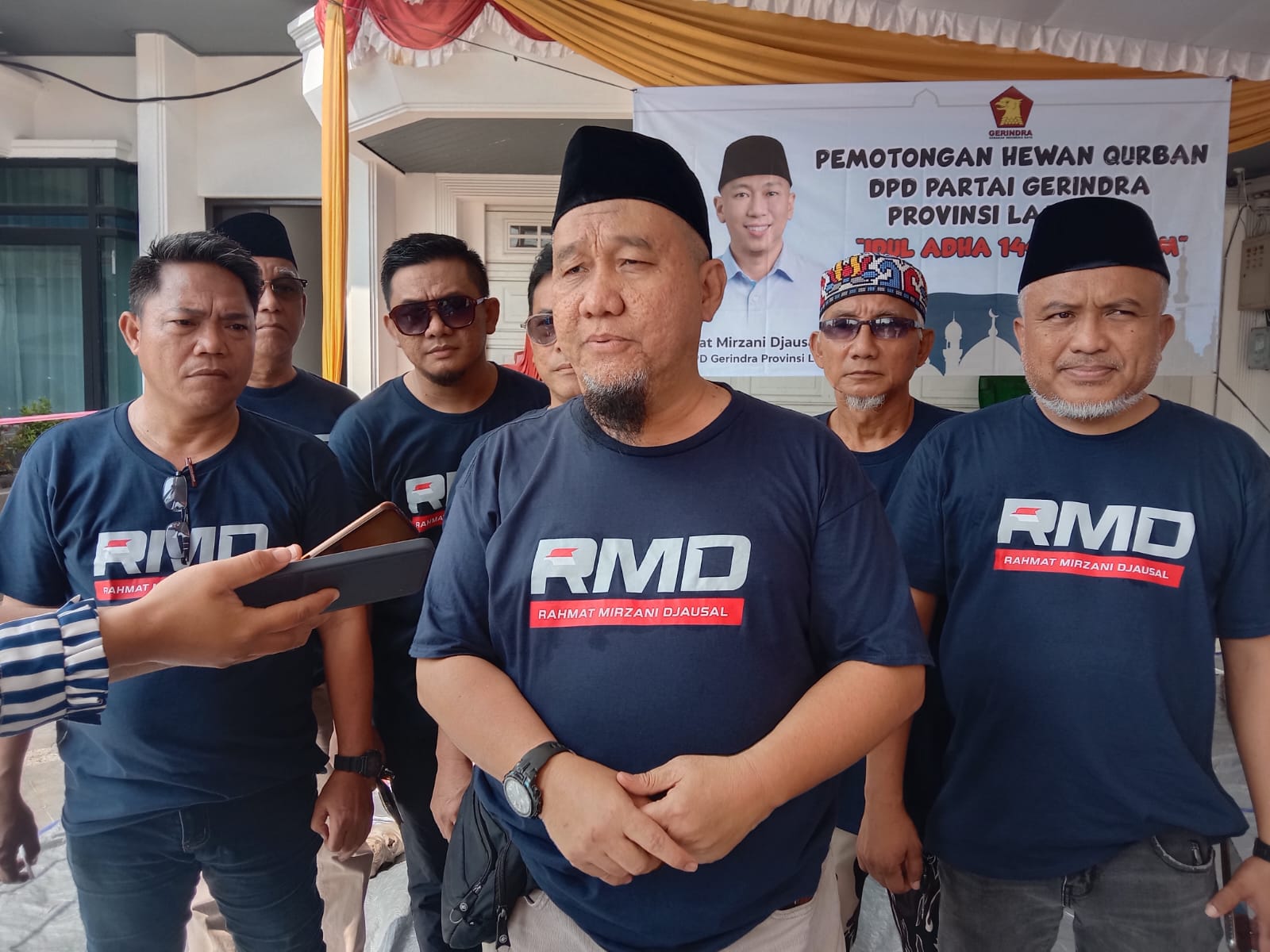 LAMPUNG (IP) – Ketua Kurban Hanafi Mengatakan DPD Gerindra Mengatakan Perayaan Hari Raya Iduladha 1445 H, Dewan Pimpinan Daerah (DPD) Partai Gerindra Lampung yang diwakili Oleh ketua panitia Penyembelihan Hewan Kurban tahun meenyembelih enam ekor sapi, di kantor DPD Gerindra Lampung 18/6/2024 selasa