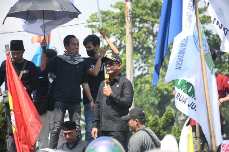 “Semua aspirasi saudara akan kami sampaikan kepada DPR RI,” ujarnya dari atas mobil komando.