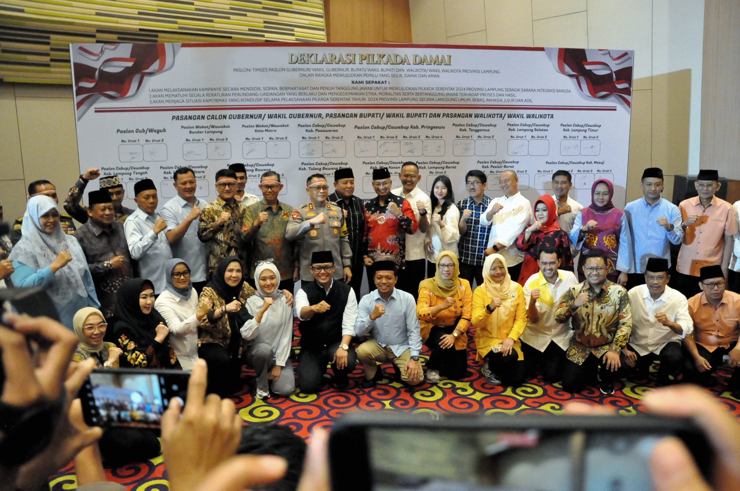Diakhir kegiatan, dilakukan penandatanganan Deklarasi Pilkada Damai Calon Gubernur, Calon Wakil Gubernur, Calon Walikota, Calon Wakil Walikota, Calon Bupati dan Calon Wakil Bupati se-Provinsi Lampung.