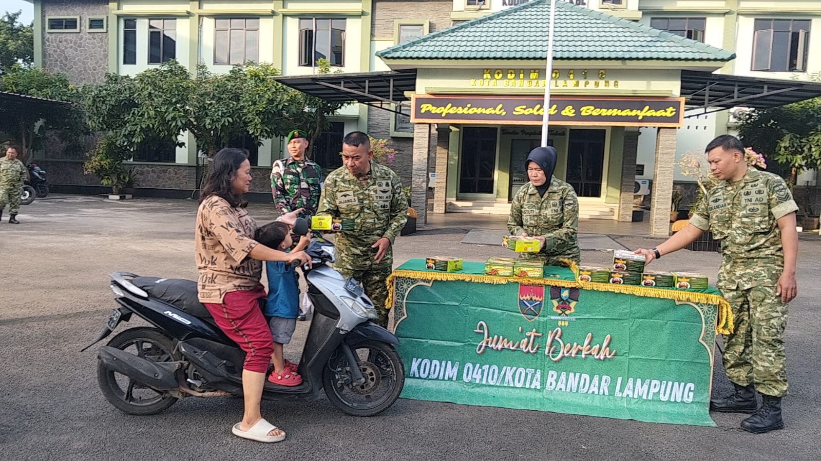 Kegiatan yang berlangsung di Jalan Imam Bonjol, Kelurahan Langkapura, Kecamatan Kemiling, Kota Bandar Lampung ini dimulai pada pukul 17.00 WIB. Para Babinsa terlihat turun langsung ke jalan untuk berinteraksi dan berbagi kebahagiaan dengan warga sekitar serta para pengemudi ojek online yang tengah menunggu penumpang.